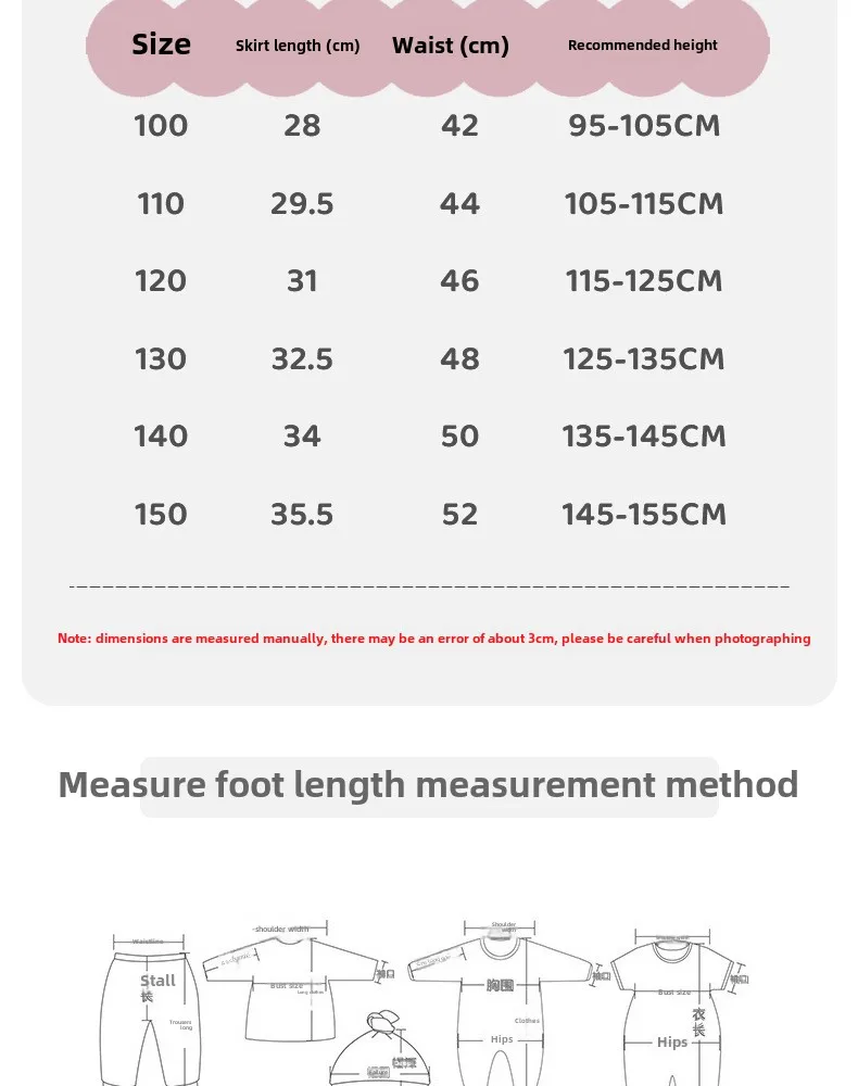 -Because of the different measurement methods,there may be 1-3cm of the allowable range error.