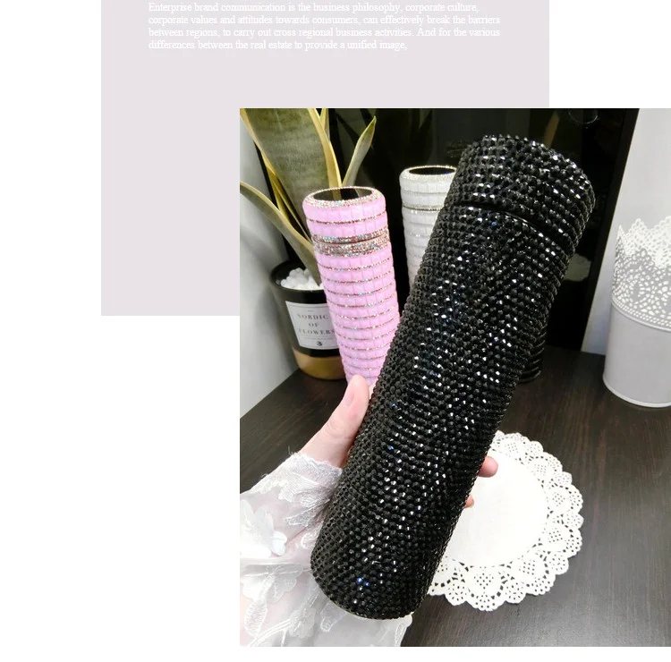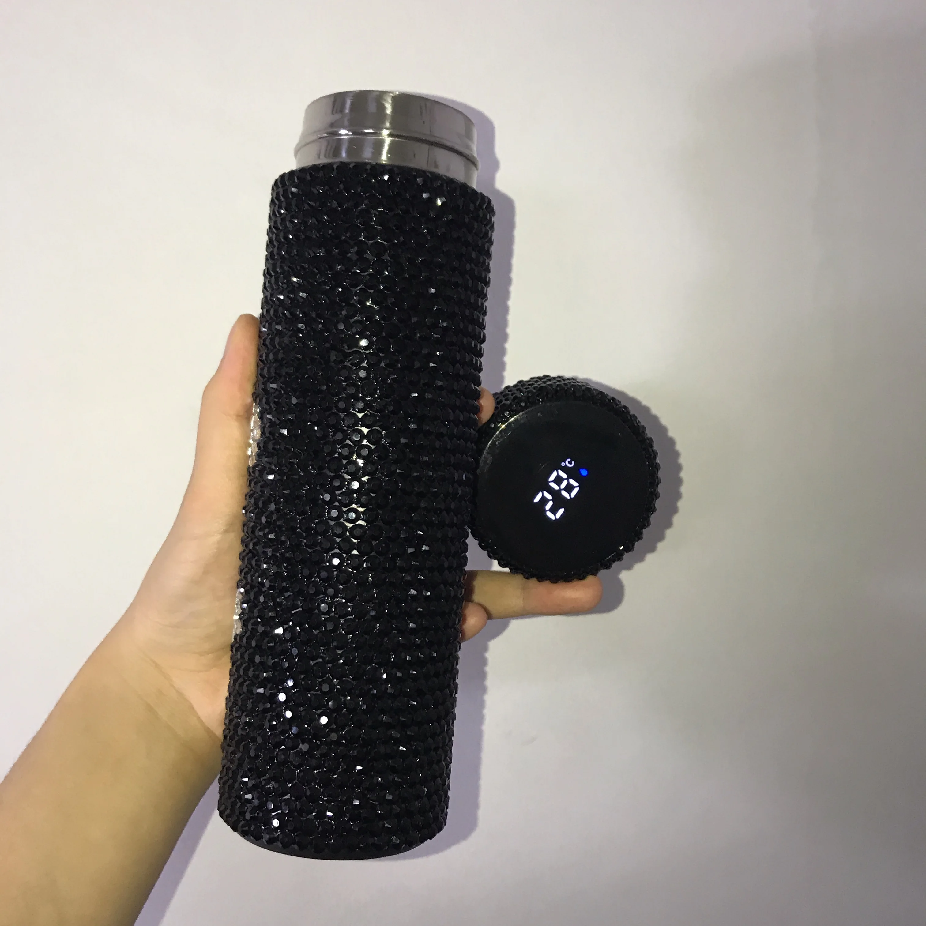 Custom Name Logo Tumbler Bling Rhinestones Vacuum Flasks Thermos Stainless Steel Water Bottles Gifts for Girls Insulated Flask